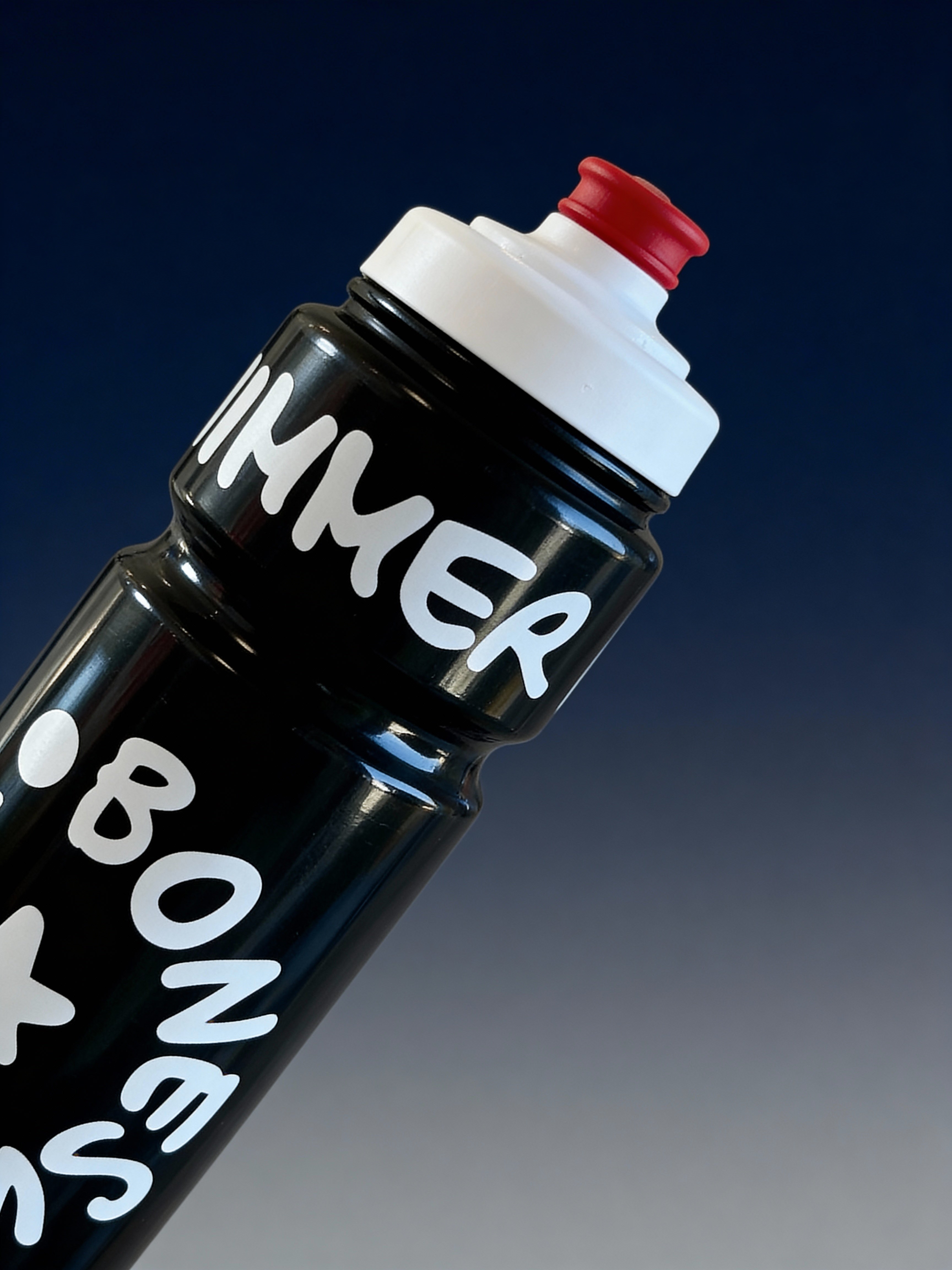 Gourde sportive BONESWIMMER de 750 ml, noire avec logo blanc. Un accessoire essentiel qui allie dessin et utilité pour vous accompagner à chaque entraînement.