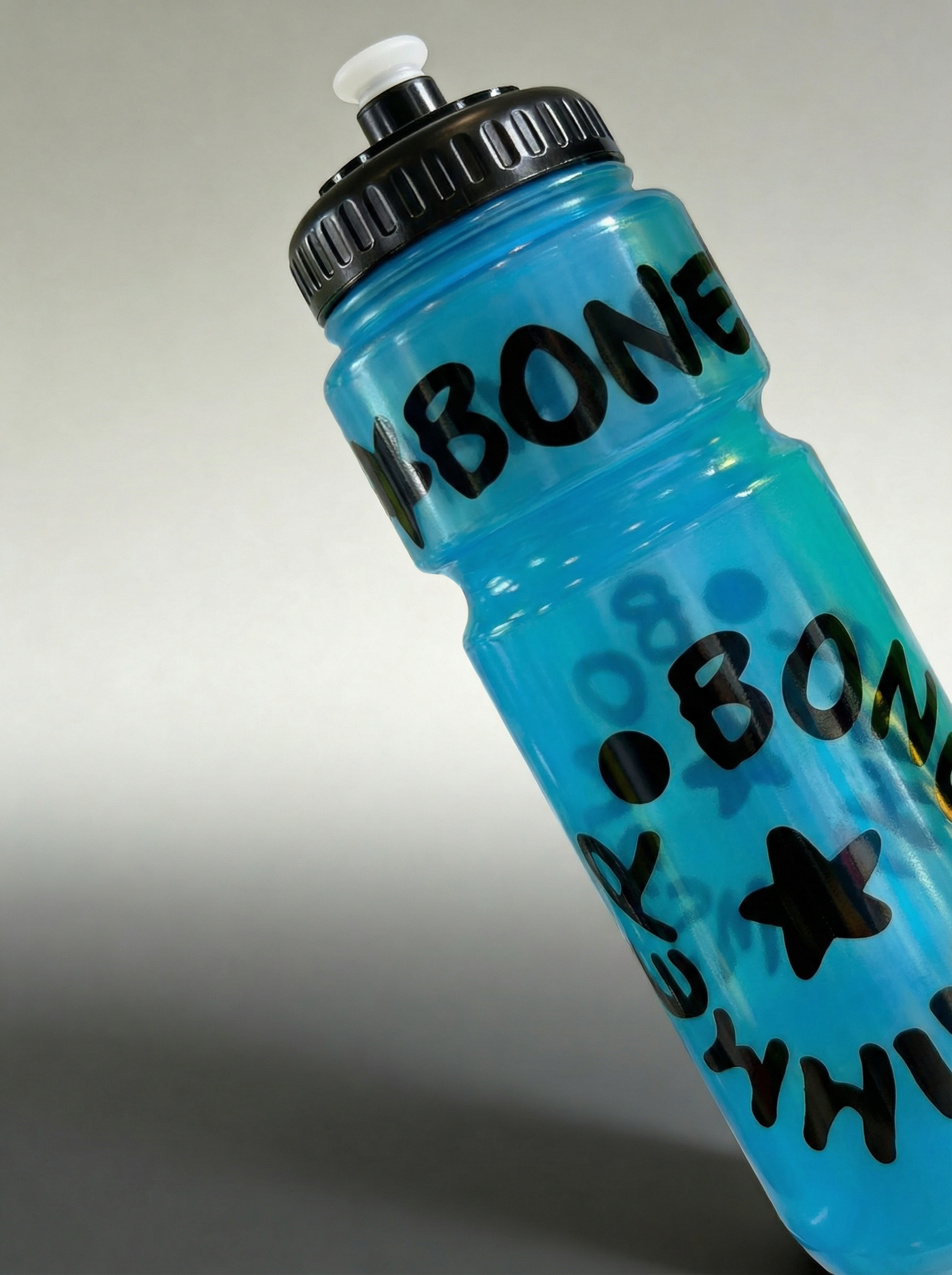 Gourde sportive BONESWIMMER de 750 ml, bleu clair transparent avec logo noir contrastant. Un accessoire technique et épuré, conçu pour vous accompagner à chaque entraînement.