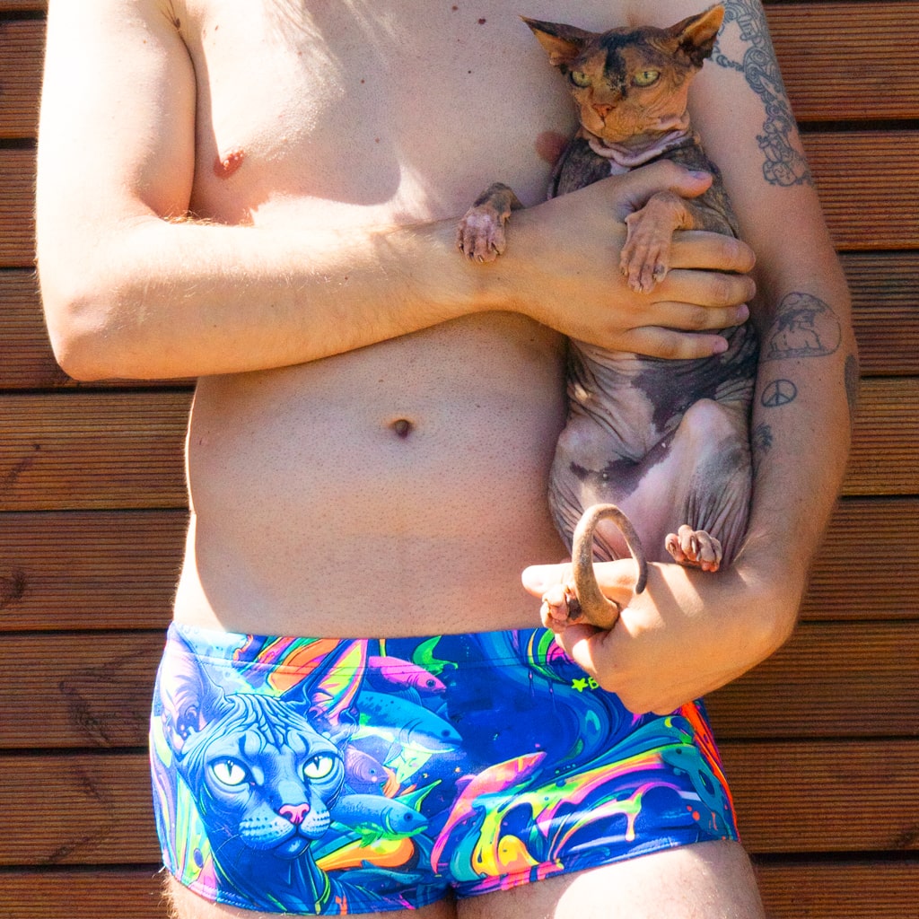 Le graphisme est audacieux, presque hyperréaliste. Au dos, un serpent noir aux yeux bleu glace crée un impact visuel fort, accentué par le contraste avec l’orange vif. Le style est puissant, inspiré d’un imaginaire urbain et sauvage, pour le nageur qui cherche un vêtement technique avec une forte personnalité esthétique.