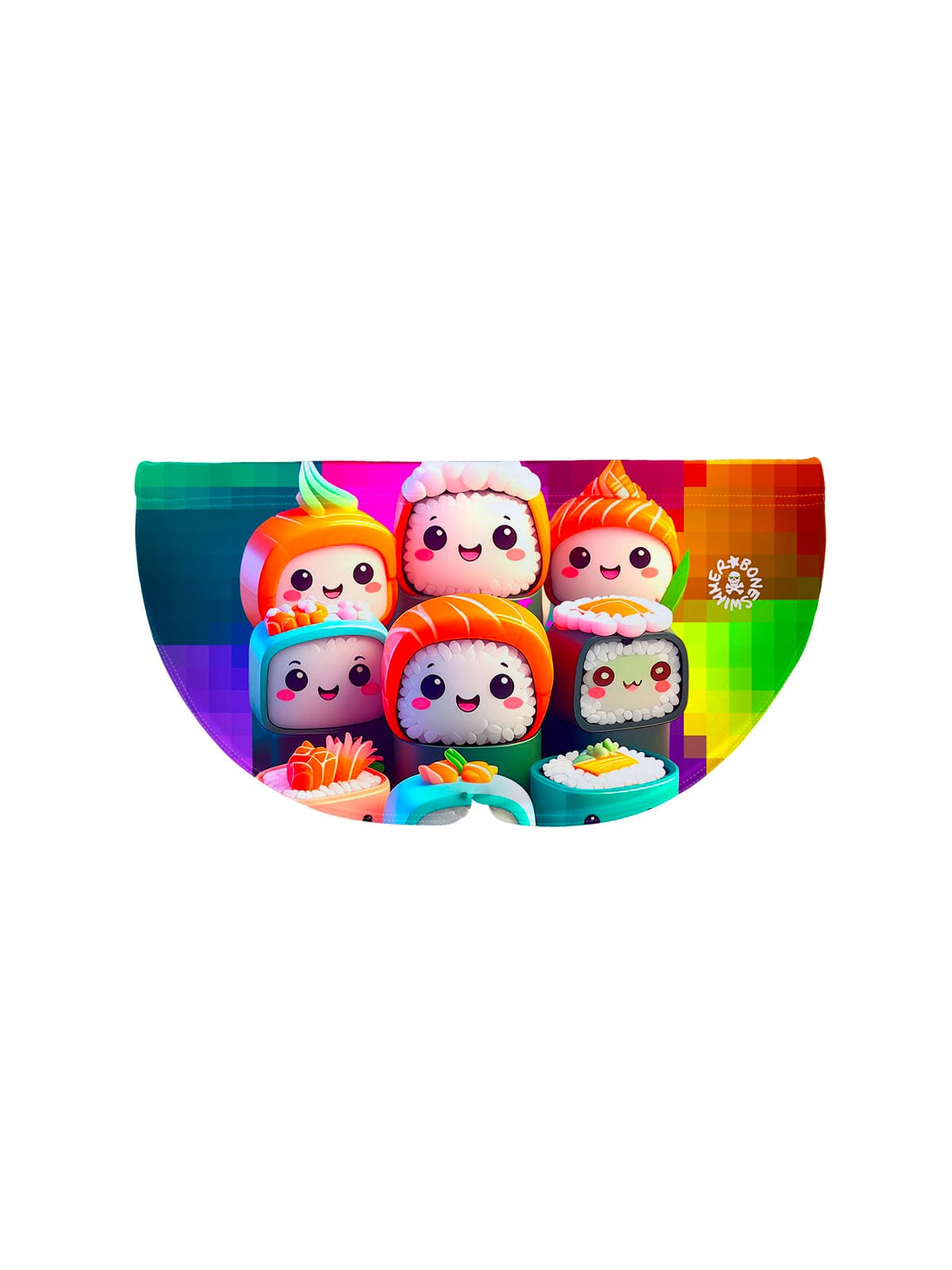 Slip d'entraînement, modèle H2Otto. Imprimé "Sushi" : un design vif avec des personnages sushi sympathiques sur fond arc-en-ciel, pour un look joyeux et original dans le bassin.