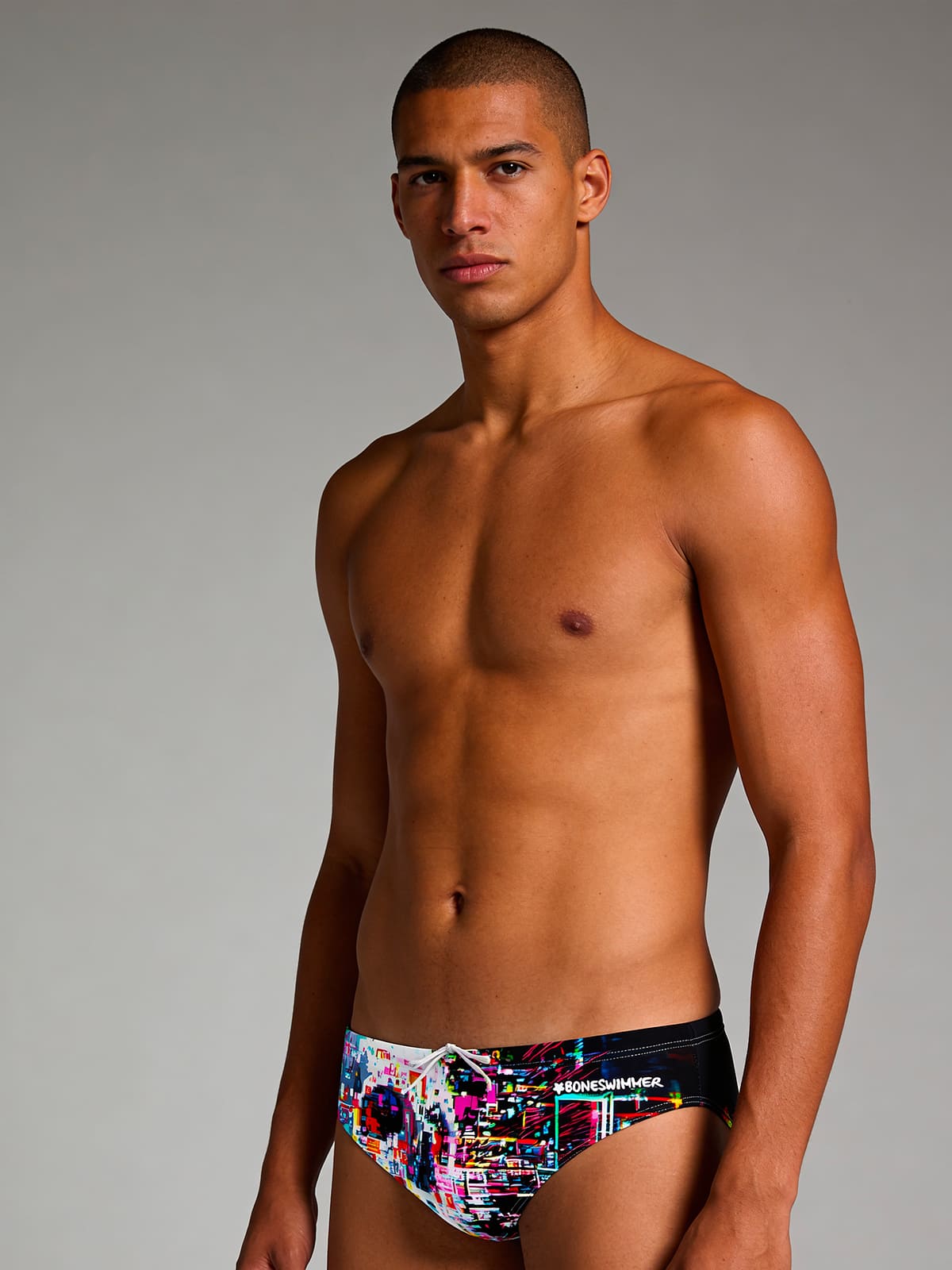 Slip da nuoto uomo da allenamento H2OTTO 428H - Glitch — costume da nuoto uomo, BONESWIMMER Made in Italy