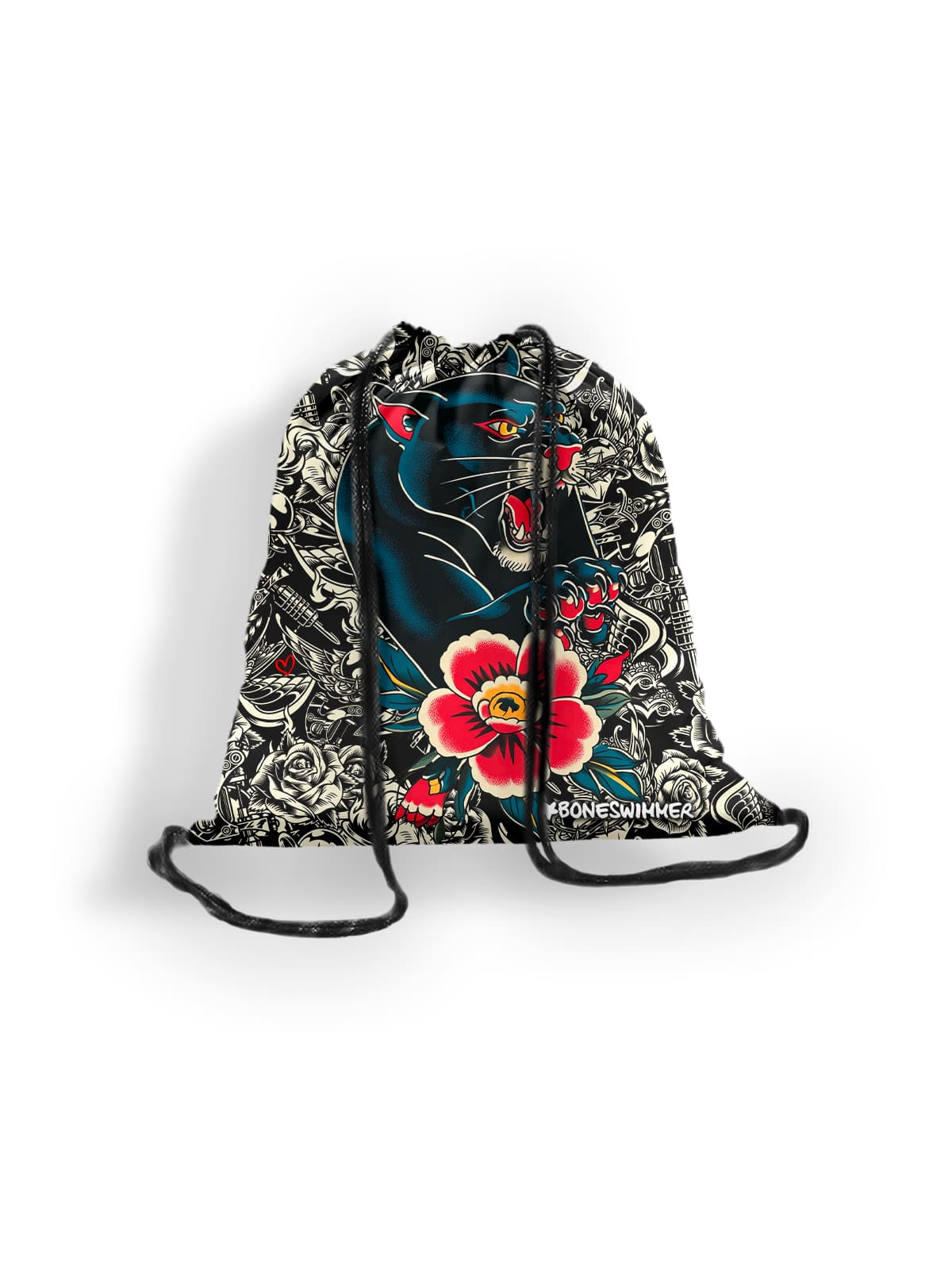 Sac à dos en microfibre Boneswimmer, motif Tatouage. Léger, compact et robuste : idéal pour transporter l'essentiel au bord de la piscine.