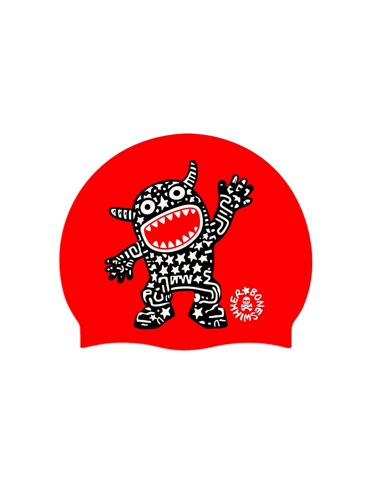 Stile: vivace e simpatica, con l'illustrazione di un mostro tribale stilizzato, ricoperto di stelle bianche su fondo nero. La figura, che richiama elementi di arte urban e tatuaggi tribali, crea con forte contrasto sul rosso brillante, creando un effetto visivo di forte impatto. Il disegno è dinamico e giovanile e comunica energia, originalità e un senso di ribellione giocosa.