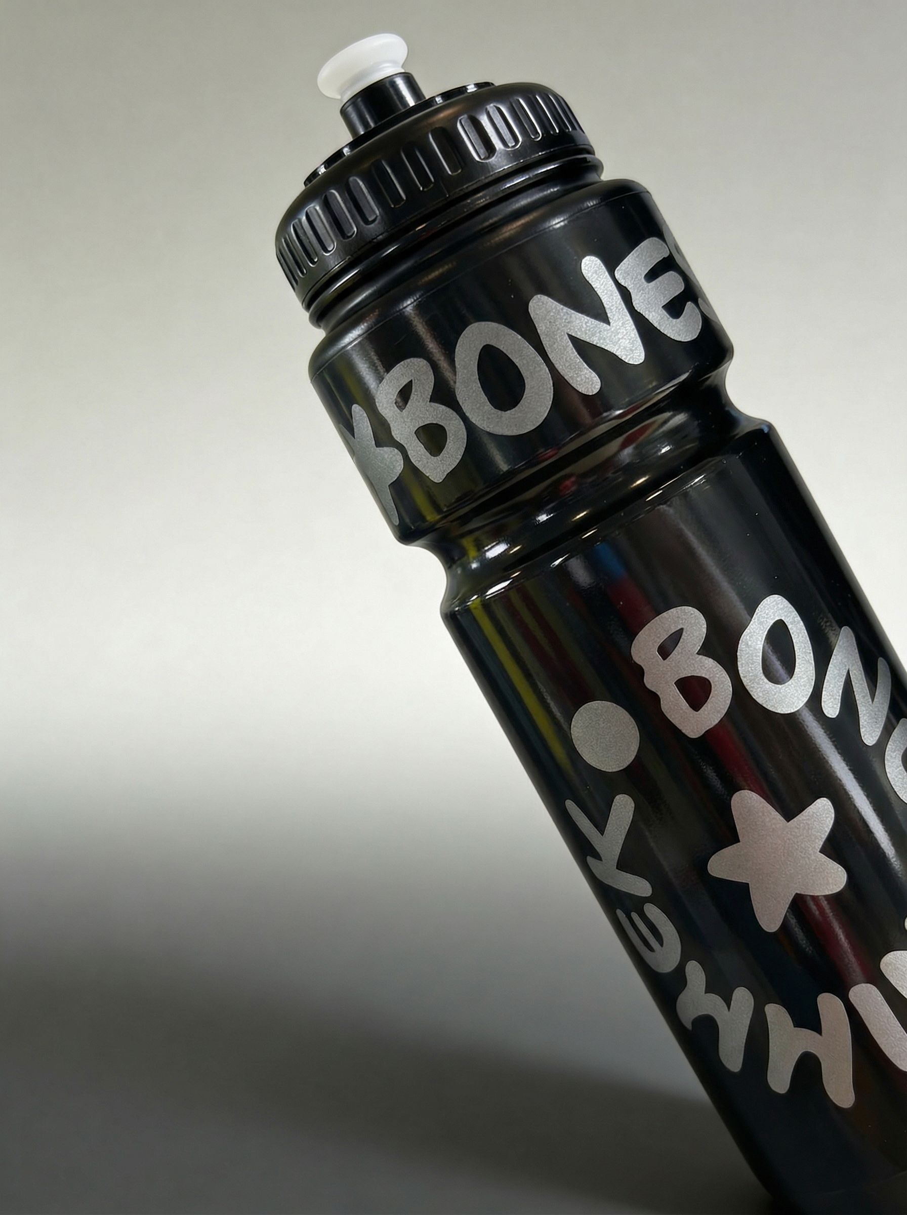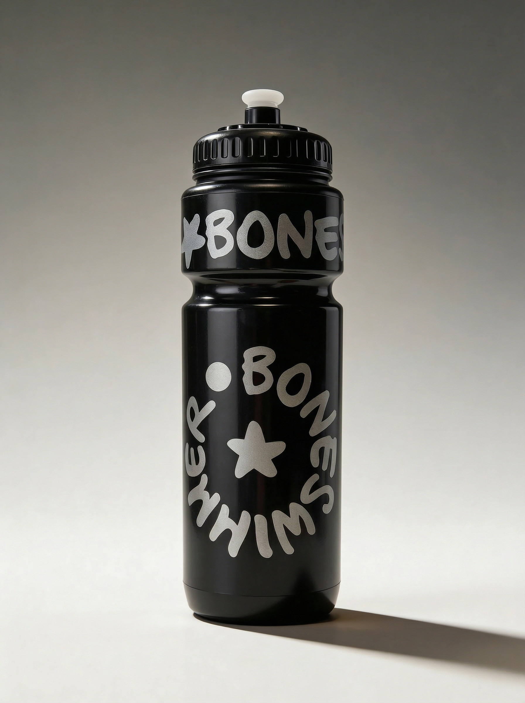 Sportflasche 750 ml mit Schnabelverschluss - BONESWIMMER Schwarz Silber Logo