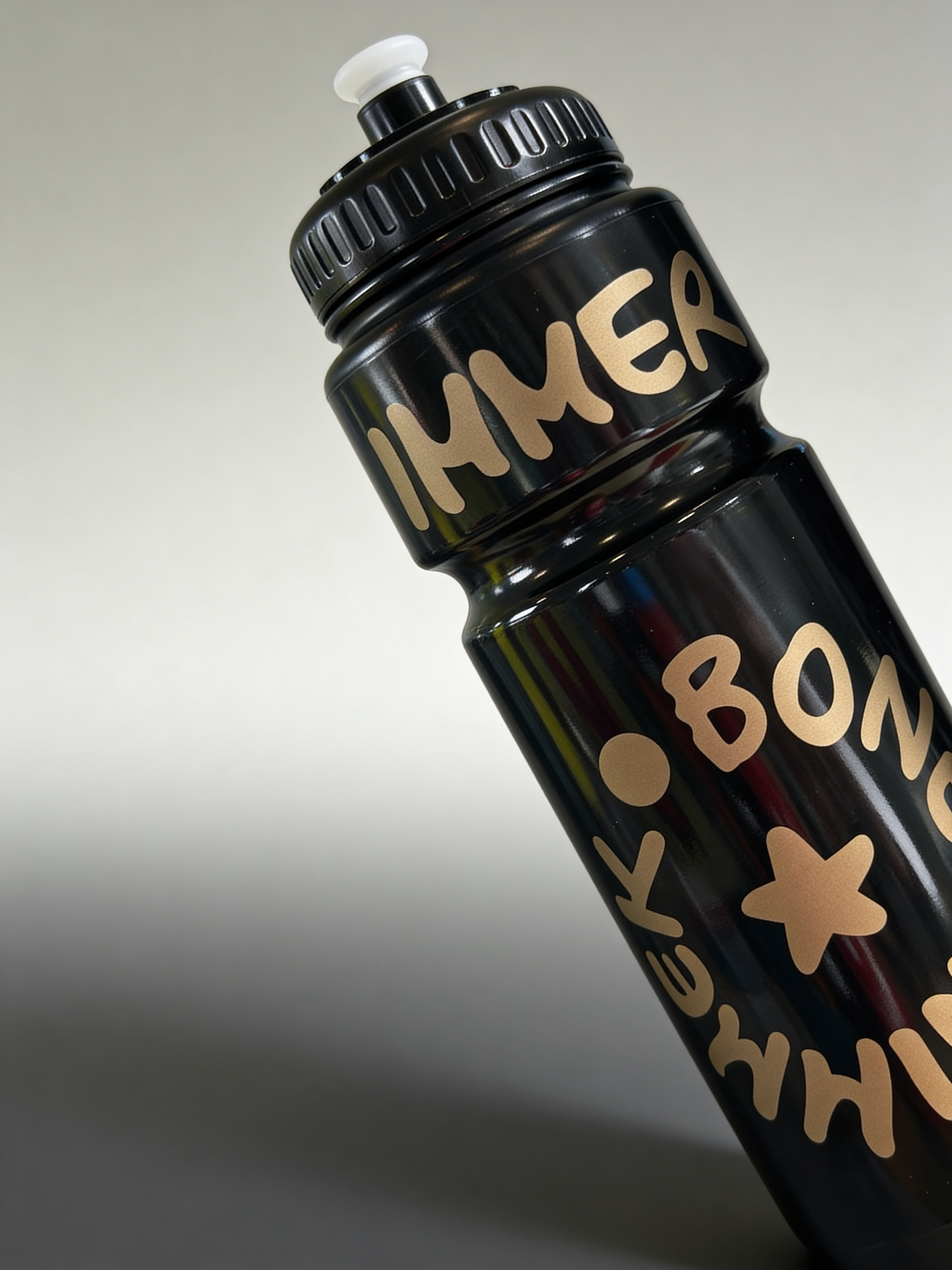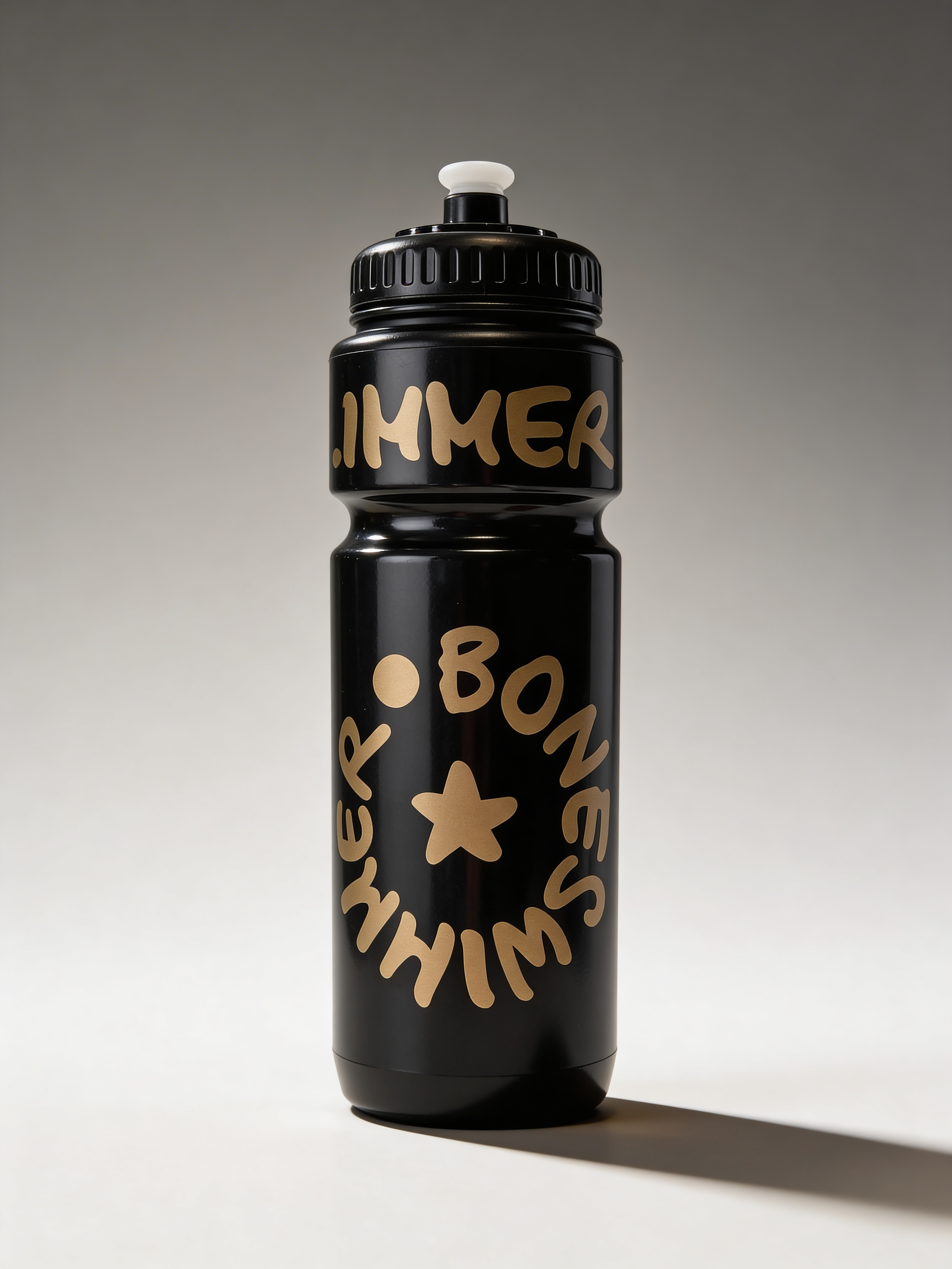 Sportflasche 750 ml mit Schnabelverschluss - BONESWIMMER Schwarz Gold Logo