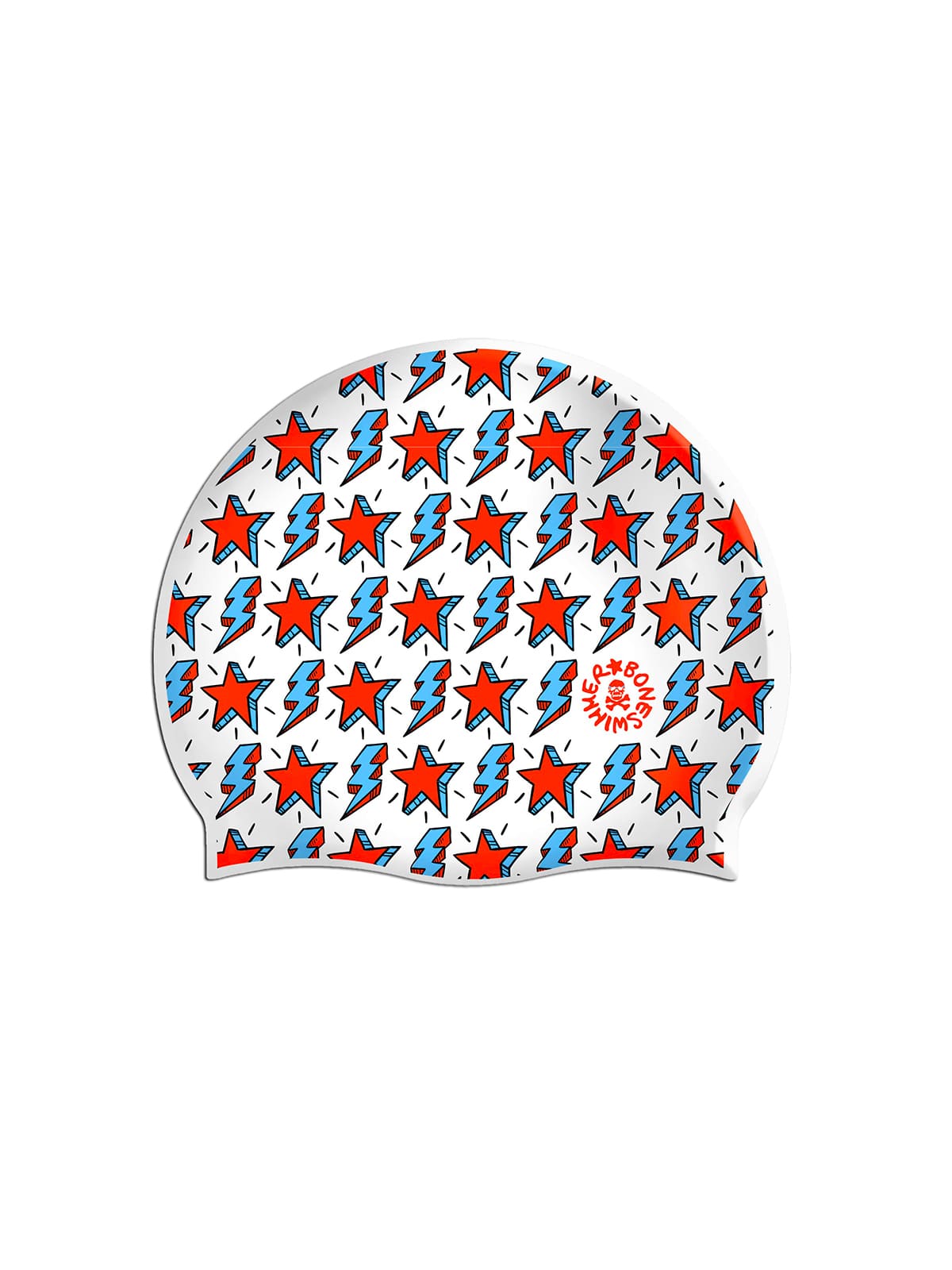 Der Druck befindet sich auf beiden Seiten der Badekappe.